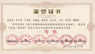 本科生自主研制的“基于创新级联机构的超脊椎智能仿生海豚” 项目获得“2016国际顶点设计大赛”二等奖, 2017年“第十五届挑战杯全国大学生课外学术科技作品竞赛”三等奖。
