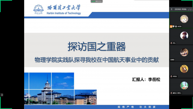 1月20日至2月1日,由组长董博文分配任务,两位队员通过网上查找资料、询问同学的方式进行调研。询问对象中,天文协会的一位同学为团队成员热心科普了火星探测器的相关知识,并详细介绍了我校在探测器太阳能帆板上的贡献。资料收集完毕后,两位队员进行组内交流、汇总。经过调研,同学们得知由我校师生所开发的可展开柔性太阳能电池系统、发动机金属橡胶阻尼环与可耐受极端条件的国旗材料等技术成果均被用于天问一号。我校团队也在“嫦娥五号”任务的月面采样技术中做出了贡献。嫦娥五号与天问一号的成功发射,我校相关专业师生功不可没。汇总完成后,李岳松同学将调研结果制作成ppt,通过线上会议的形式分享给周围同学,让更多人了解到我校为祖国航天事业做出的贡献。