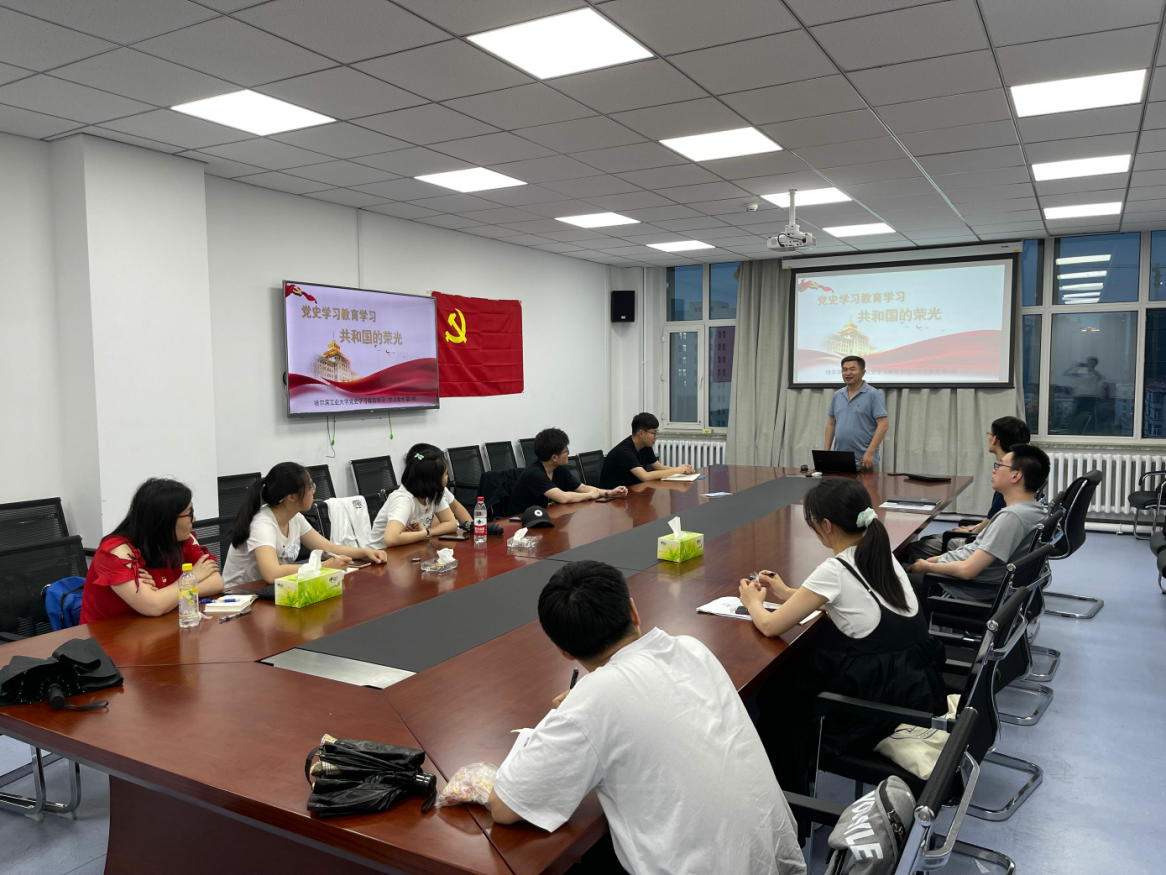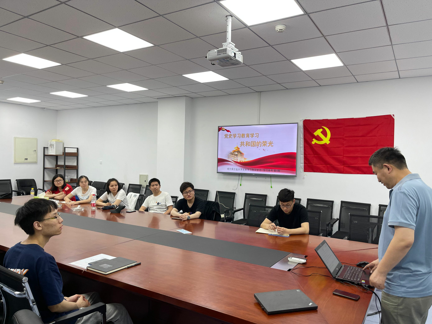 为了学习贯彻十九届五中全会精神,增强党员思想政治教育,加强党的知识普及,以饱满精神面貌迎接建党一百周年,哈尔滨工业大学欧冠联赛官网博士生第三党支部于2021年6月15日在理学楼717教室开展了党史学习教育活动。此次党课由党委委员王先杰为对接党支部主讲,主题是——共和国的荣光。
