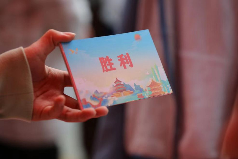 此摊位分为画画猜词与比划猜词两种玩法,两人一组,一人比划或言语提示(不得出现同字)、一人画画(不得出现文字数字),另一人猜所描述的国庆相关词组。答对题目满足一定次数要求,即可获得准备的盲盒徽章、零食、文具等礼物。