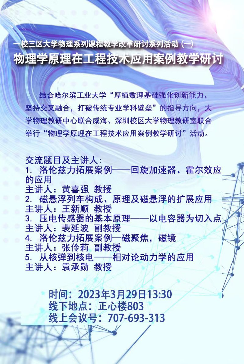 一校三区大学物理系列课程教学改革研讨系列活动——物理学原理在工程技术应用案例教学研讨