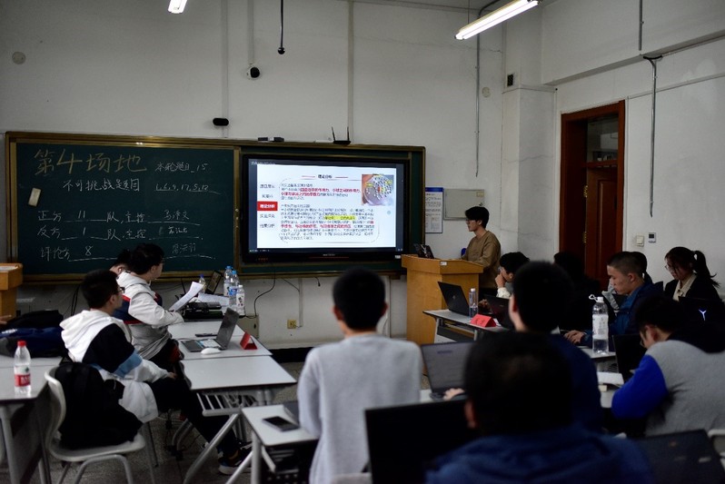 开幕式后,进行了各队的风采展示。本次校内选拔赛共有来自全校各院系的81名同学参赛。风采展示后,比赛分别在正心楼303、403、404、406四个教室同时展开。整个比赛持续一天,共进行3轮比赛、每轮4个阶段。比赛中,参赛队伍围绕本届CUPT比赛中的题目,从理论和实验、仿真等方面进行讲述,并与其他队伍展开讨论,评委对同学们的报告进行了点评和指导。