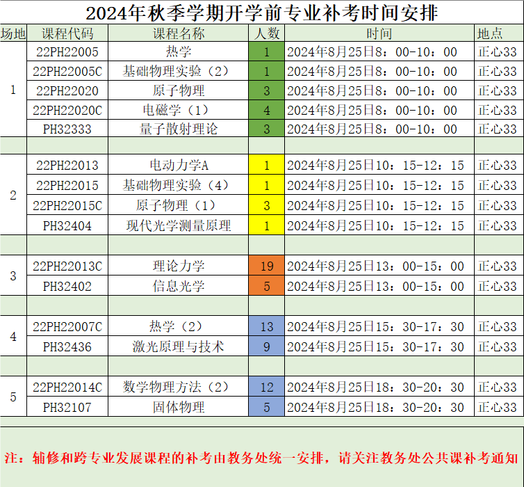 2024年秋季学期开学前本科(专业课)补考、缓考时间安排