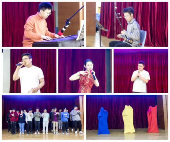 本次支部大舞台在辅导员老师与学生会同学们的合唱《青苹果乐园》后正式开始。各年级团支部上报的15个节目分别在“家国”“成长”和“奋进”三个篇章中进行。第一篇章“家国”中,24硕1班团支部庞闳竞同学首先带来了一曲古韵悠长而战意盎然的古筝演奏《战台风》。接着2311501团支部带来合唱《稻香》,欢快的旋律满载着大家对故乡的深情。24硕1班团支部与24硕3班团支部的合唱《中国军魂》《我和我的祖国》中,青年们用真挚激昂的歌声表达了对祖国母亲的深切热爱和对中国军人的敬仰之情。第二篇章“成长”中,2311102团支部的晏熙来、高一帆带来的器乐合奏《风居住的街道》、2311501团支部陈小川的独唱《春泥》、24硕1班团支部党磊吉的独唱《修炼爱情》,让我们不禁回想成长路上的酸甜苦辣。而由2311502团支部的合唱《晴天》和24硕3班团支部的王驰、李磊、张景昊三位同学带来的被单舞,展现出成长中的温暖与青年的无限青春活力。随后2211501团支部带来的京剧《夸月娥》,让观众们在明亮而优雅唱腔中,感受了古人的赞美之词。第三篇章“奋进”在2311102团支部的合唱《奇迹再现》中开始,随后2211401团支部苏江龙的独唱《裂缝中的阳光》、24硕2班团支部带来合唱《夜空中最亮的星》与荧光舞,最后2311101团支部的合唱《Counting Stars》唱响了梦想与希望,他们展现了团员青年勤奋进取、攻克难题、勇敢追梦的无怨无悔。