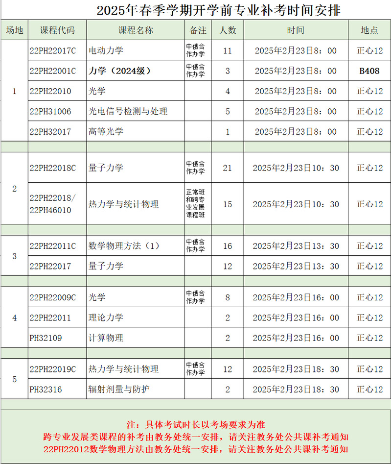 2025年春季学期开学前本科(专业课)补考、缓考时间安排