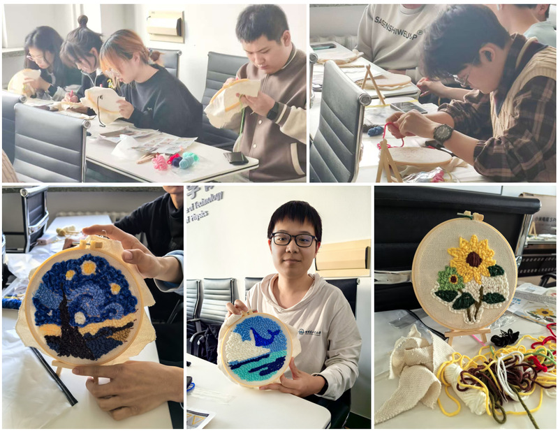 活动过程中,同学们首先学习了刺绣画的绕线、打结、配色等基础技法,随后在绣框上进行个性化创作。3个小时的活动时间里,同学们沉浸在手工创作的专注与治愈中,创作出了一幅幅兼具科学内涵与艺术美感的作品。参与者普遍反映在专注刺绣的过程中身心得到了放松。活动在欢声笑语中圆满结束。